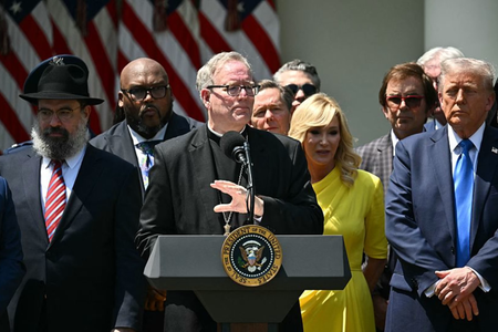 President Donald Trump responds to question from EWTN News on March 20, 2026.